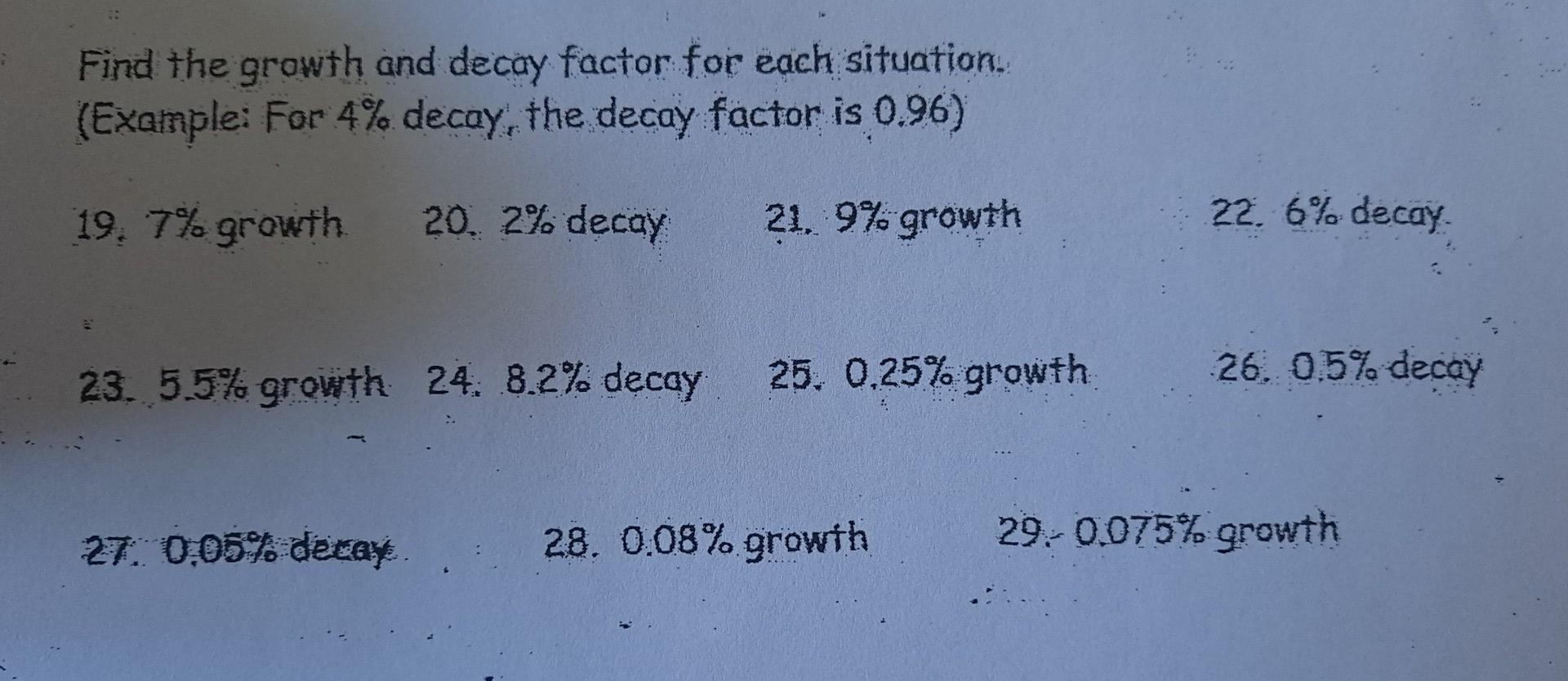 Solved Find the growth and decay factor for each situation. | Chegg.com