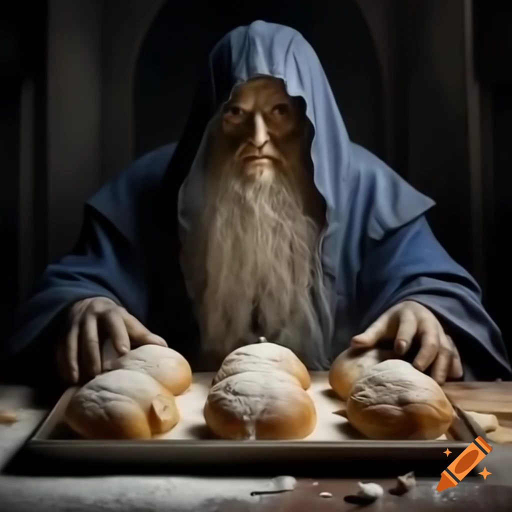 Decaying wizard with stained robes crafting pastries, intriguing mix of ...