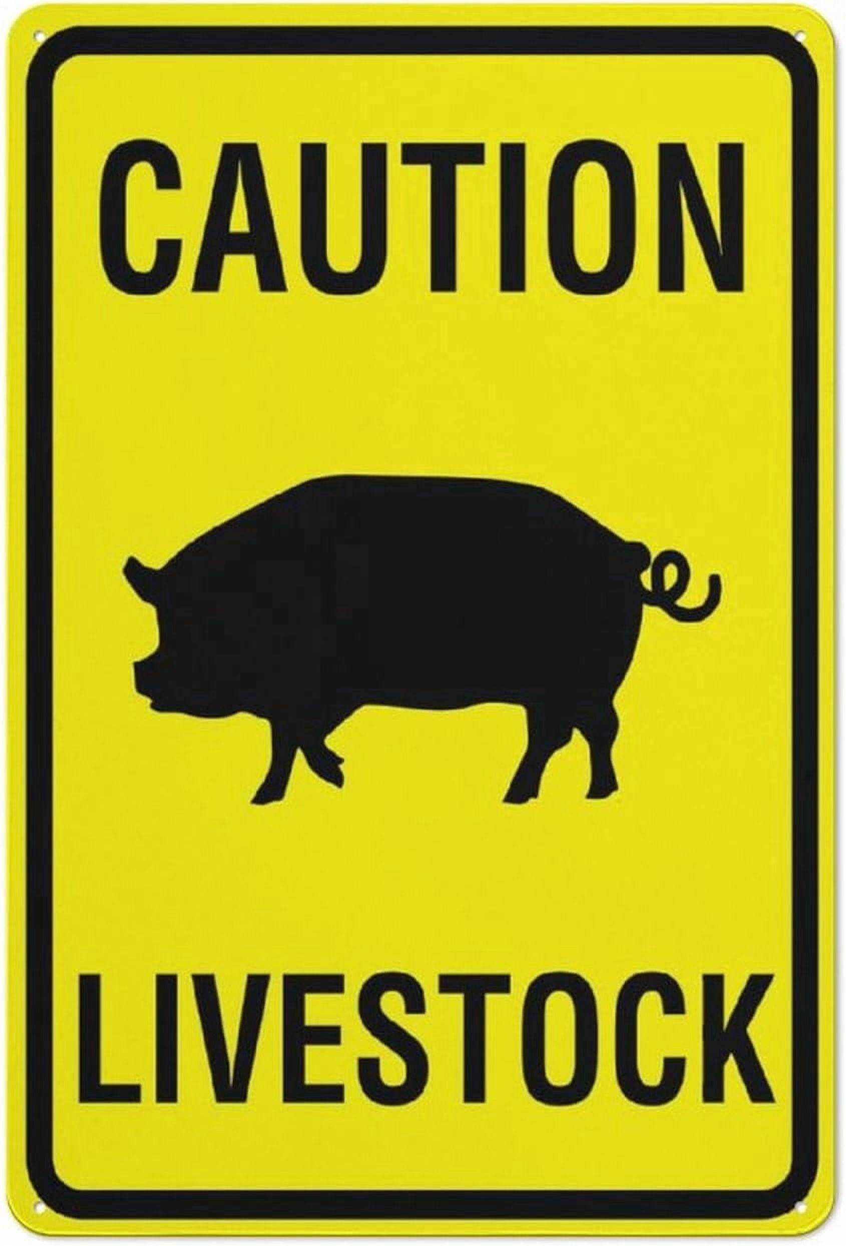 Caution Livestock Pig Bright Yellow Sign 12X8 Inches Metal Aluminum ...