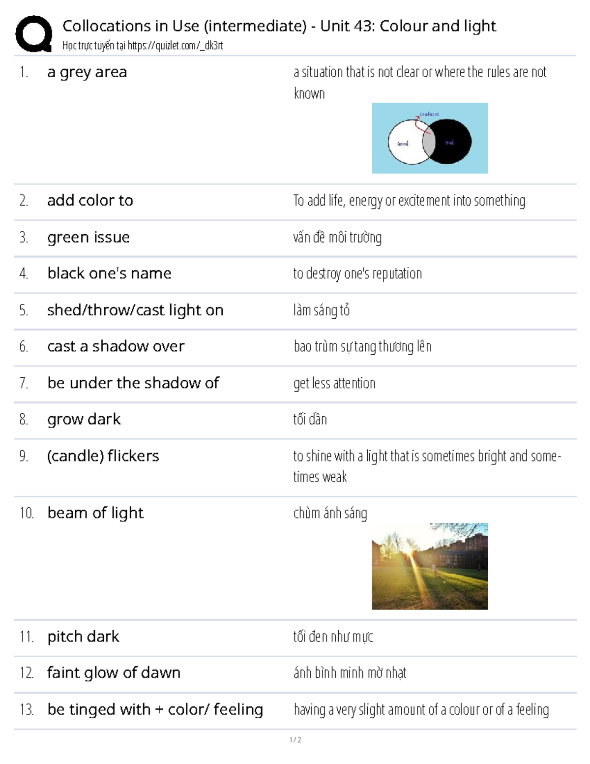 Collocations in Use (Intermediate) Unit 43: Colour and Light - Studocu
