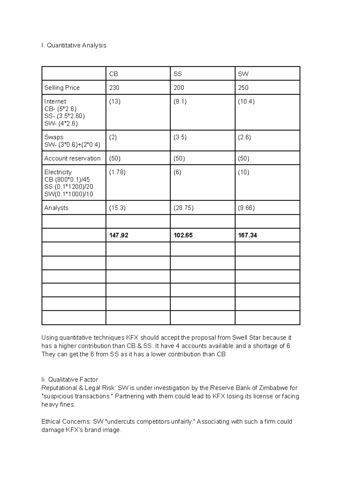 Relevant Costing Analysis for CB SS and SW Proposals - Studocu
