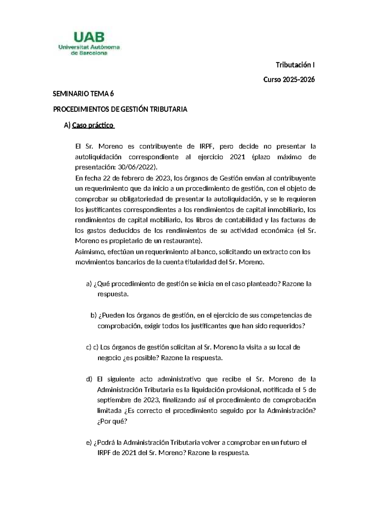 Tributación I - Seminario 6: Procedimientos de Gestión Tributaria - Studocu
