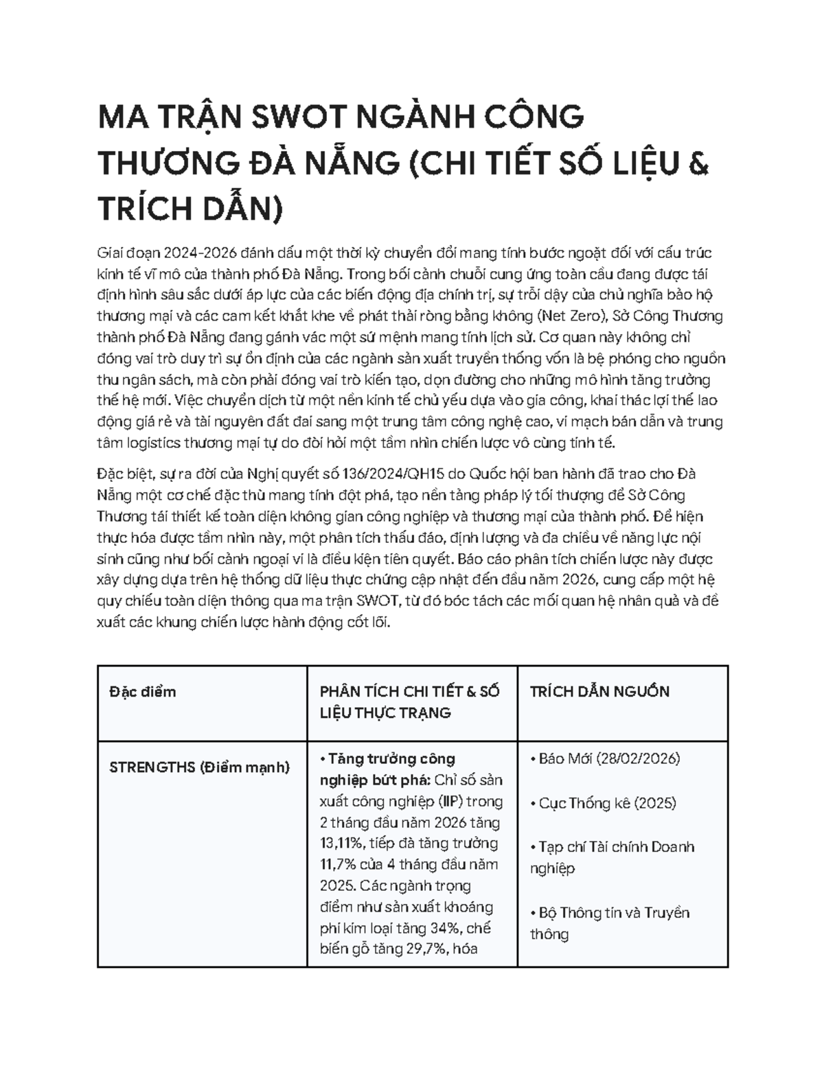 Phân Tích SWOT Sở Công Thương Đà Nẵng (Chi Tiết Dữ Liệu 2026) - Studocu