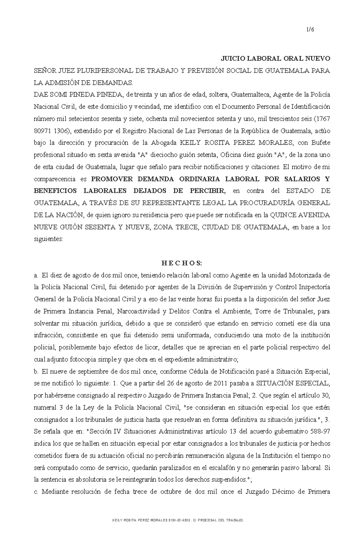 JUICIO LABORAL ORAL: DEMANDA ORDINARIA CONTRA EL ESTADO DE GUATEMALA ...