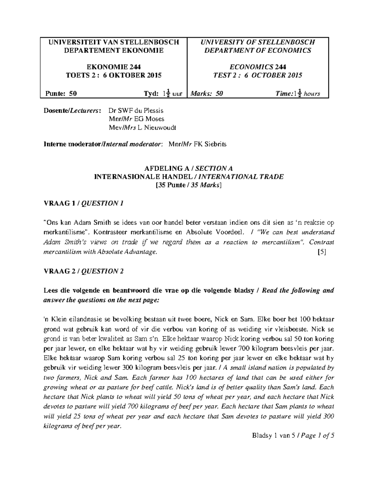 A1 2015 T2 - Economics 244 Test Paper on International Trade - Studocu