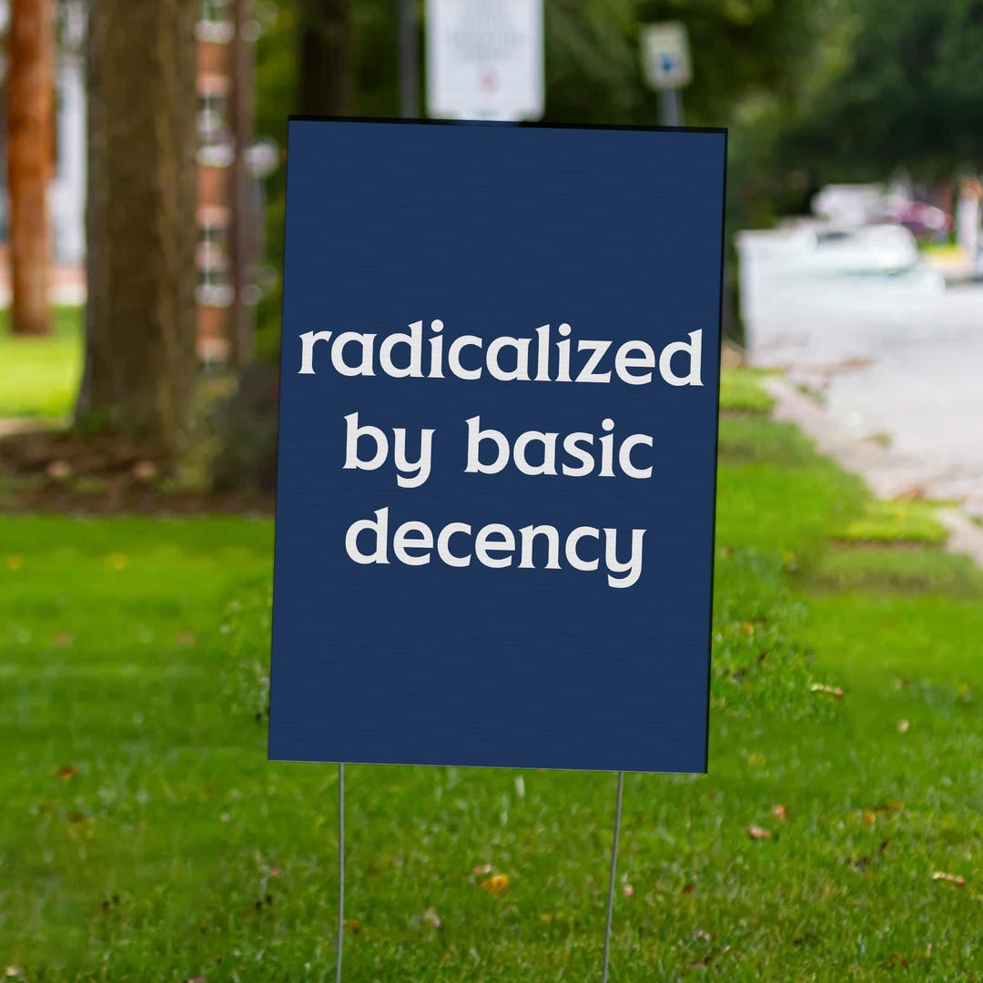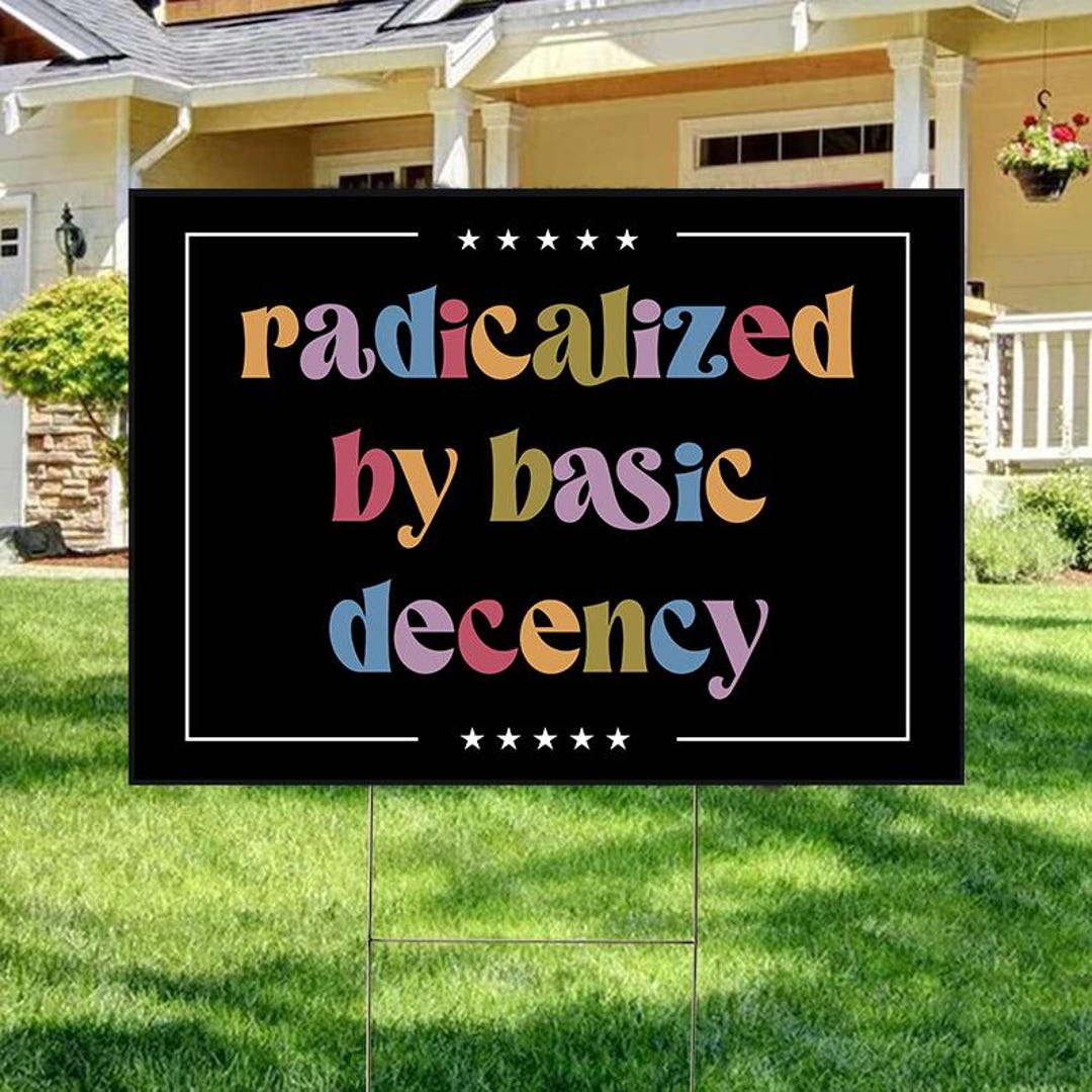Radicalized by Basic Decency Yard Sign, Progressive Yard Sign, Bold ...