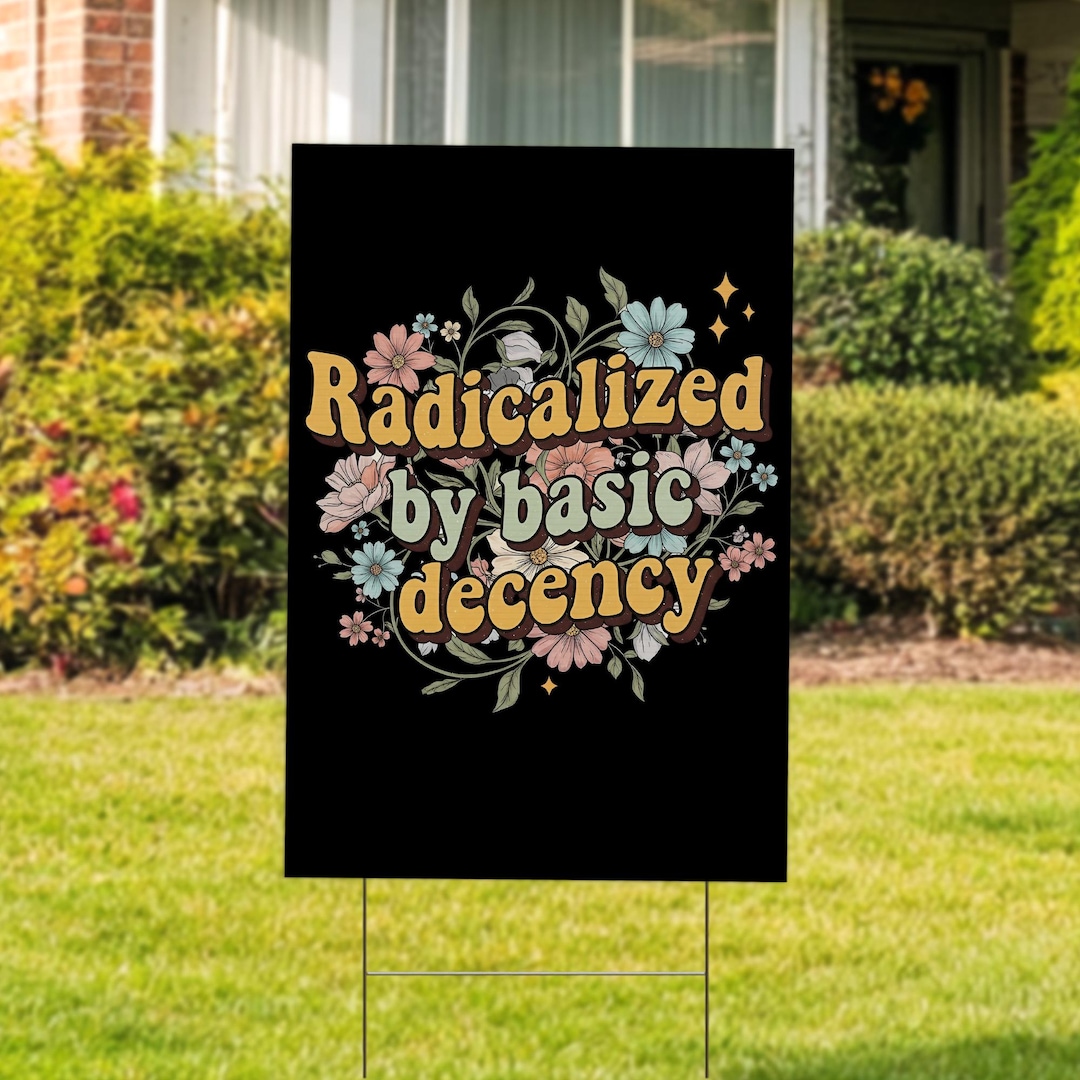 Radicalized by Basic Decency Yard Sign, Progressive Yard Decor, Bold ...