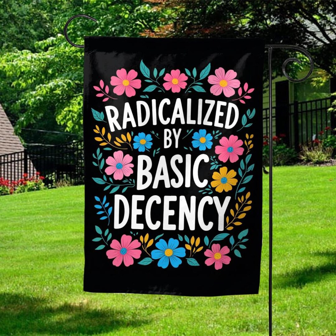 Radicalized by Basic Decency Yard Flag, Social Justice Gift, Gift for ...