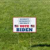 Vote Biden "Honesty. Integrity. Decency" Sign | Zazzle