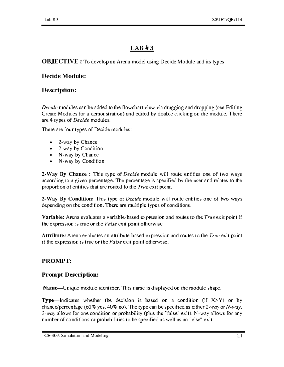 Lab3.docx - Lab # 3: Decide Module SSUET/QR/114 LAB # 3 OBJECTIVE :To ...