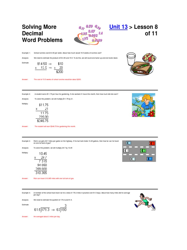 Solving More Decimal Word Problems Lesson 8 of 11: Unit 13 | PDF ...