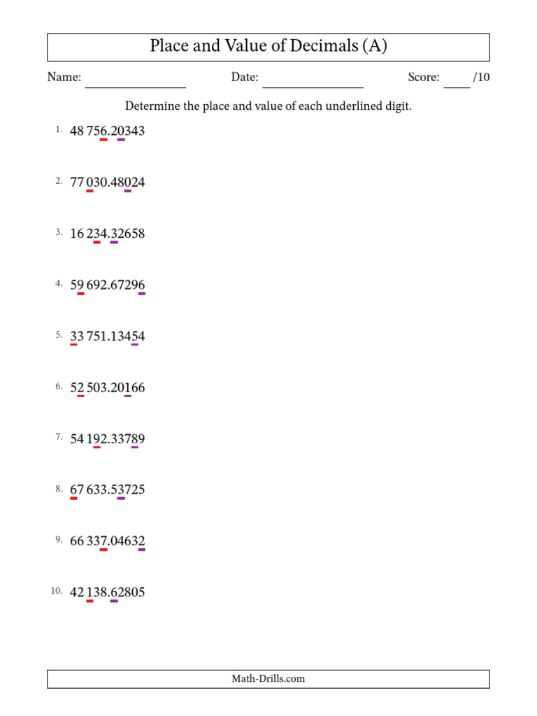 Place Value of Decimals Worksheets - 15 Worksheets.com