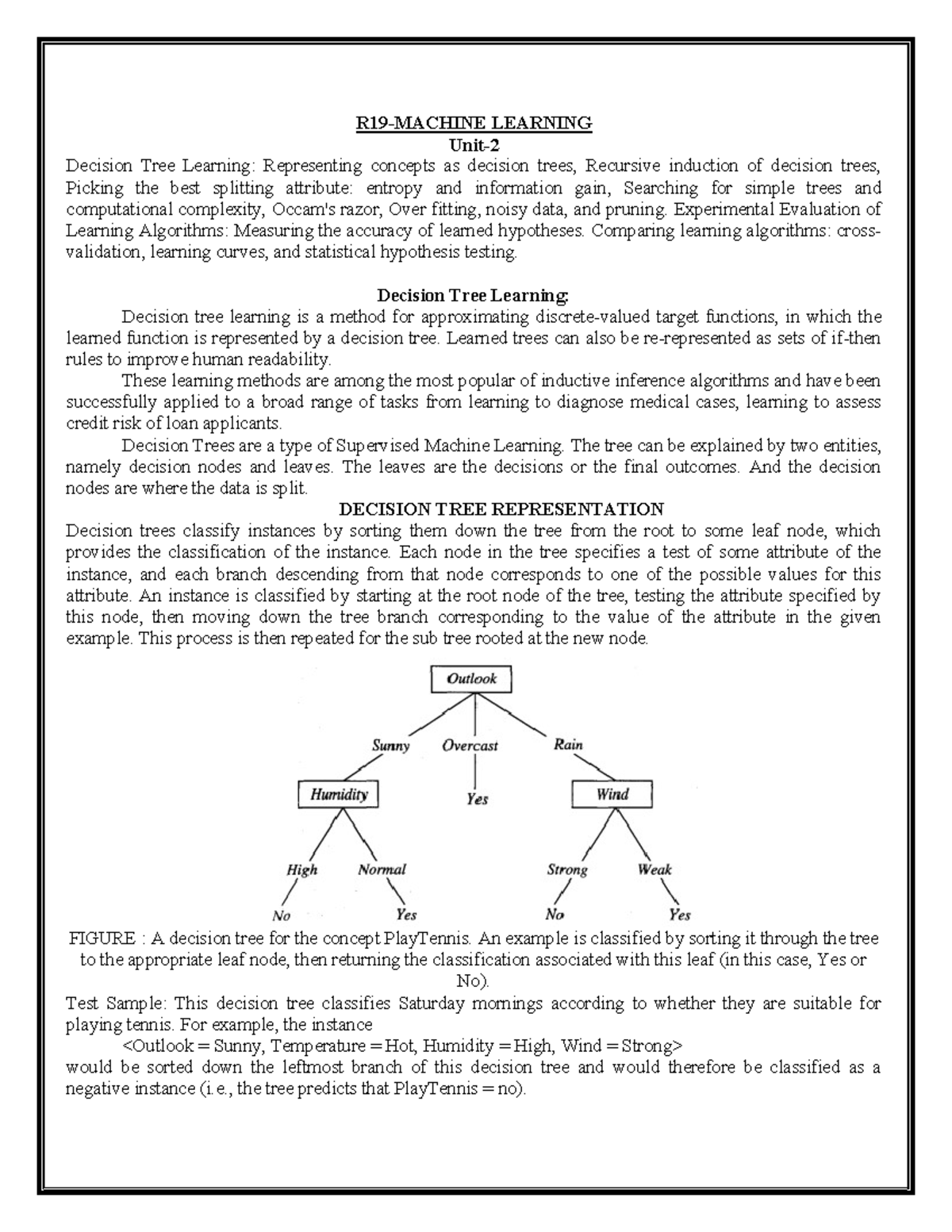 ML UNIT-2 Notes: Decision Tree Learning and Evaluation Techniques - Studocu