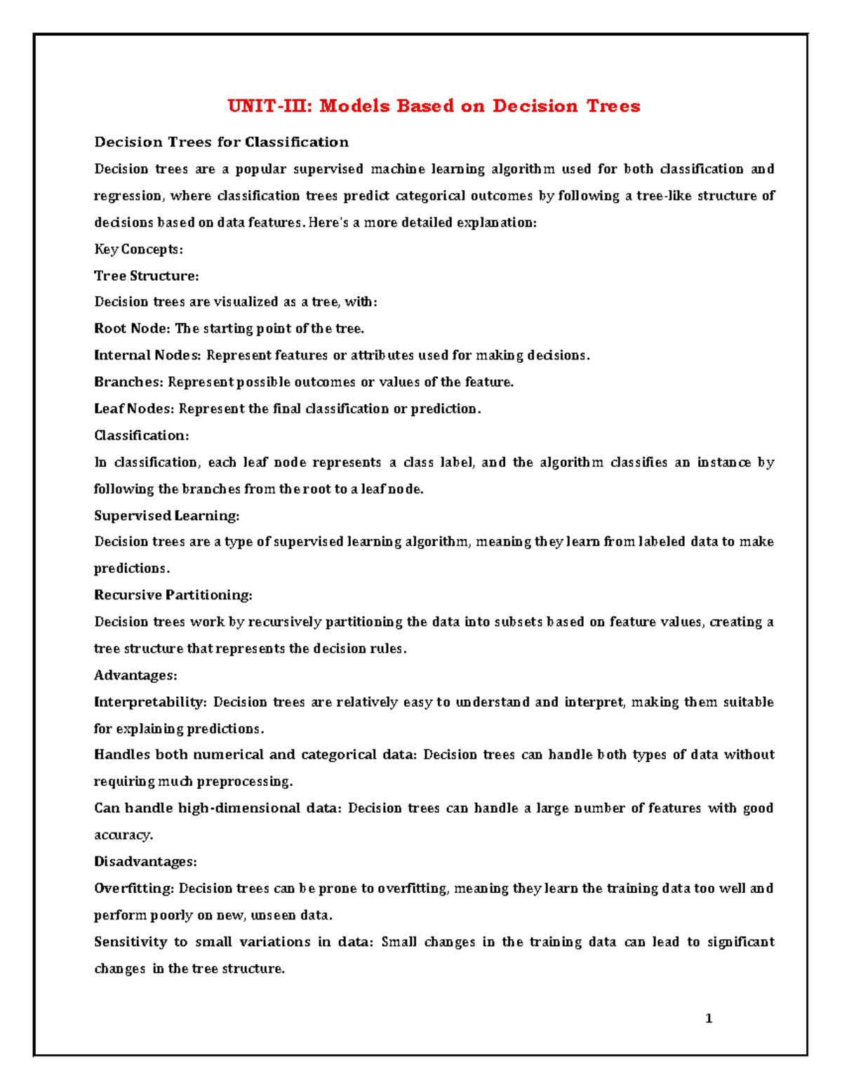 ML UNIT 3: Decision Trees & Bayesian Classifiers Overview - Studocu