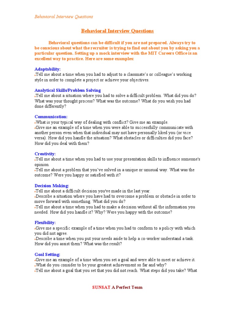 Behavioral Interview Questions | PDF | Goal | Decision Making