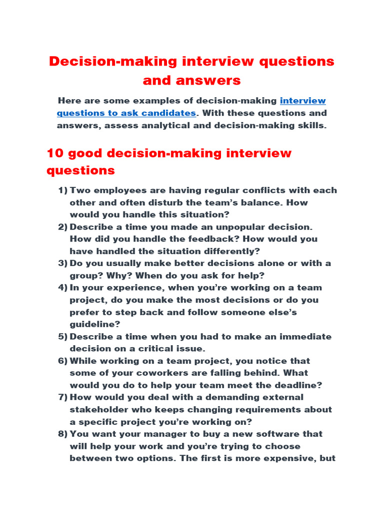 Decision-Making Interview Questions and Answers | PDF | Decision Making ...