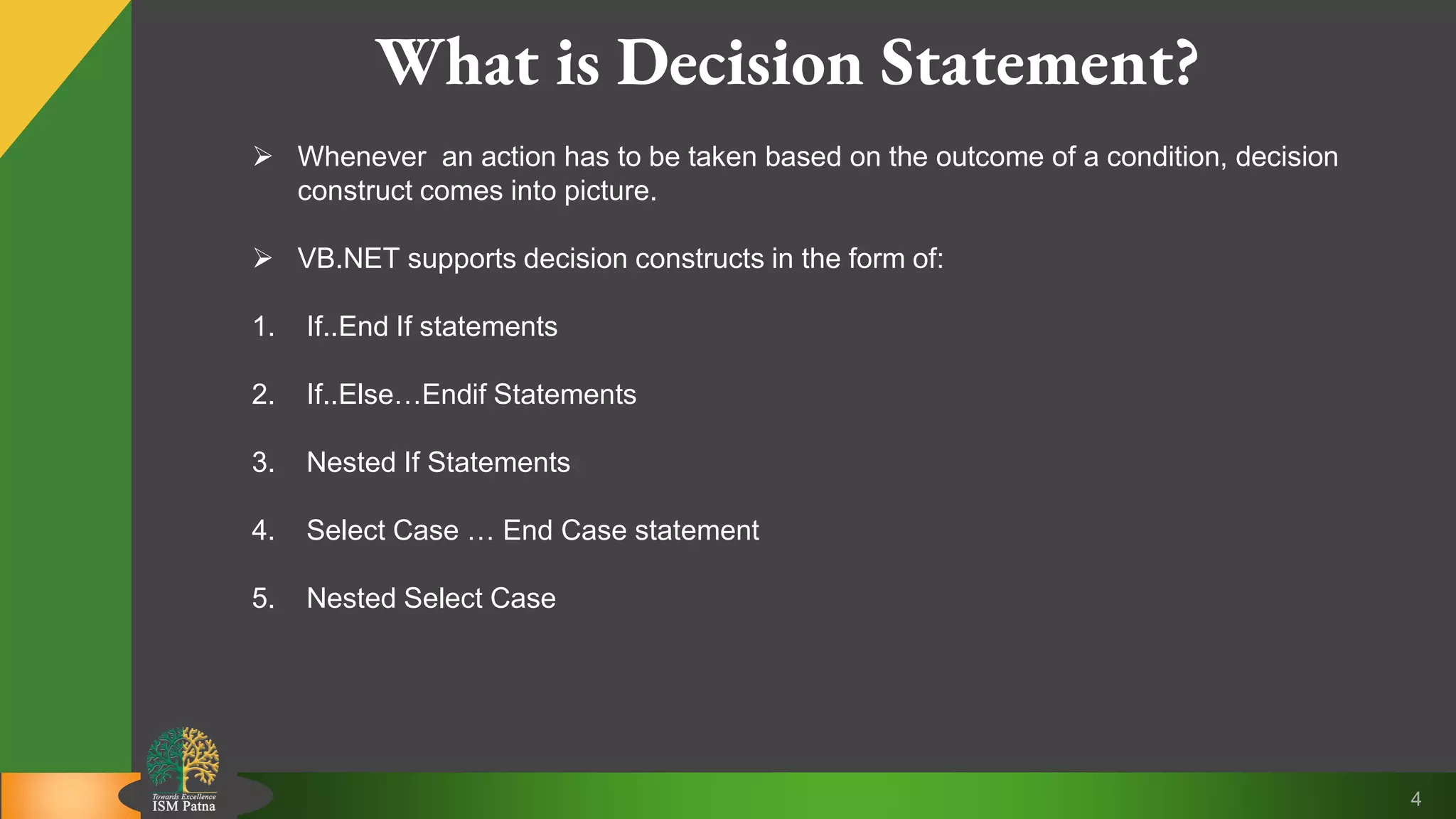 Vb decision making statements | PPTX