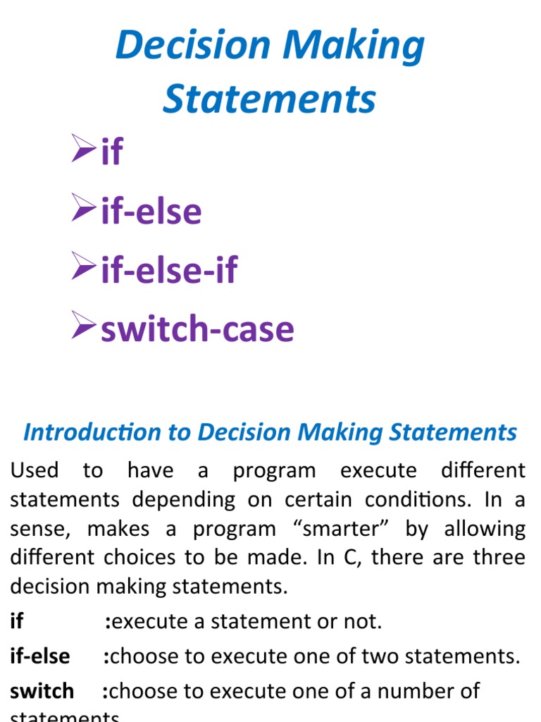 C Decision Making Statements Explained | PDF | Computer Programming ...