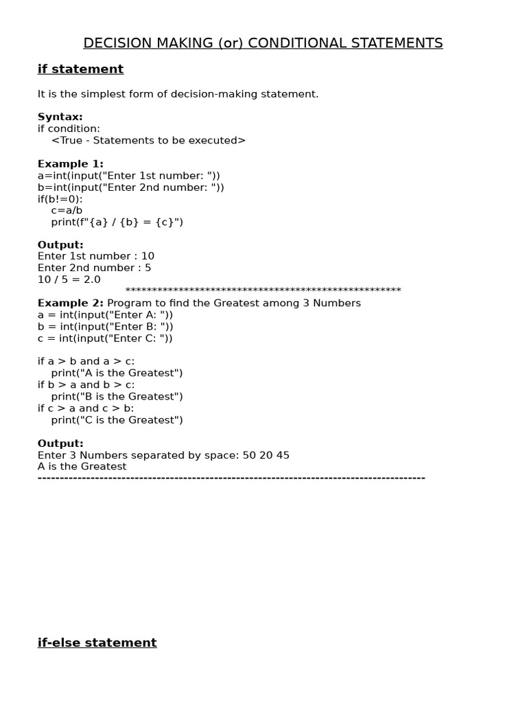 Python Decision Making Statements Explained | PDF | Python (Programming ...