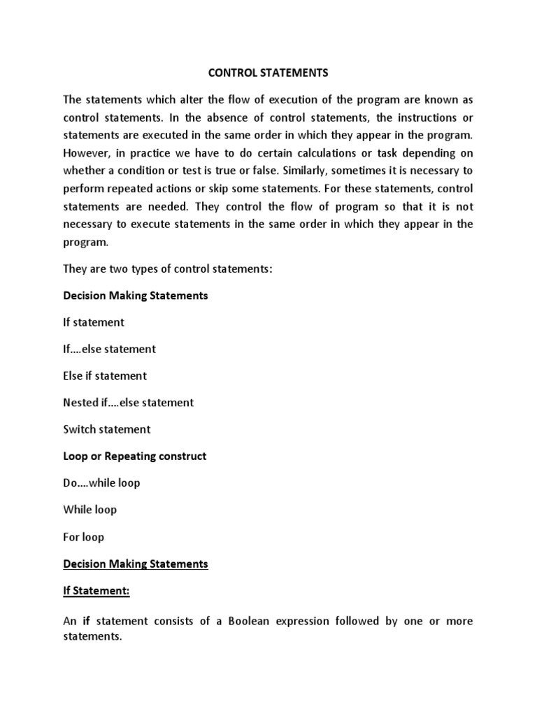 Decision Making Statements - Notes | PDF | Computer Science | Software ...