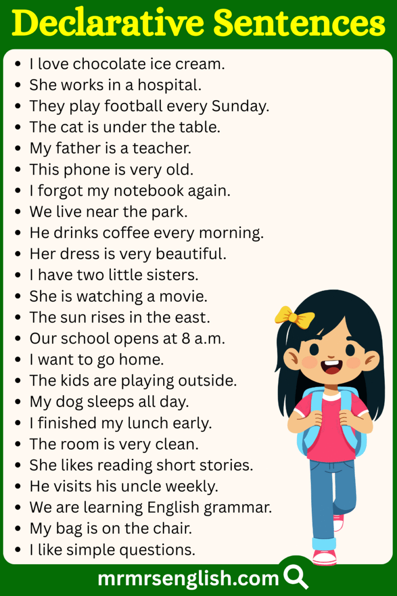 What is a Declarative Sentence? (20 Examples) - EnglishGrammarSoft