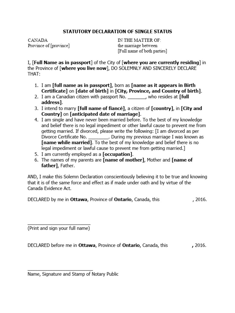 Sample Single Status Declaration For Canadians Abroad | PDF | Politics ...