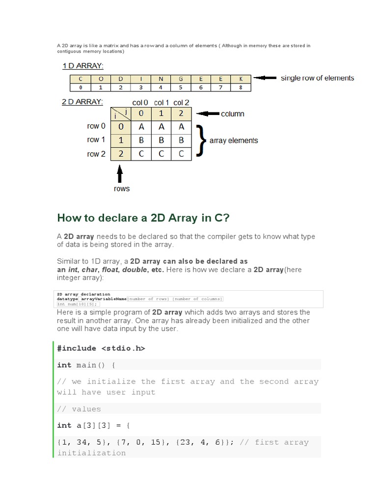 2-D Array Declaration and Initialization: A Comprehensive | Course Hero