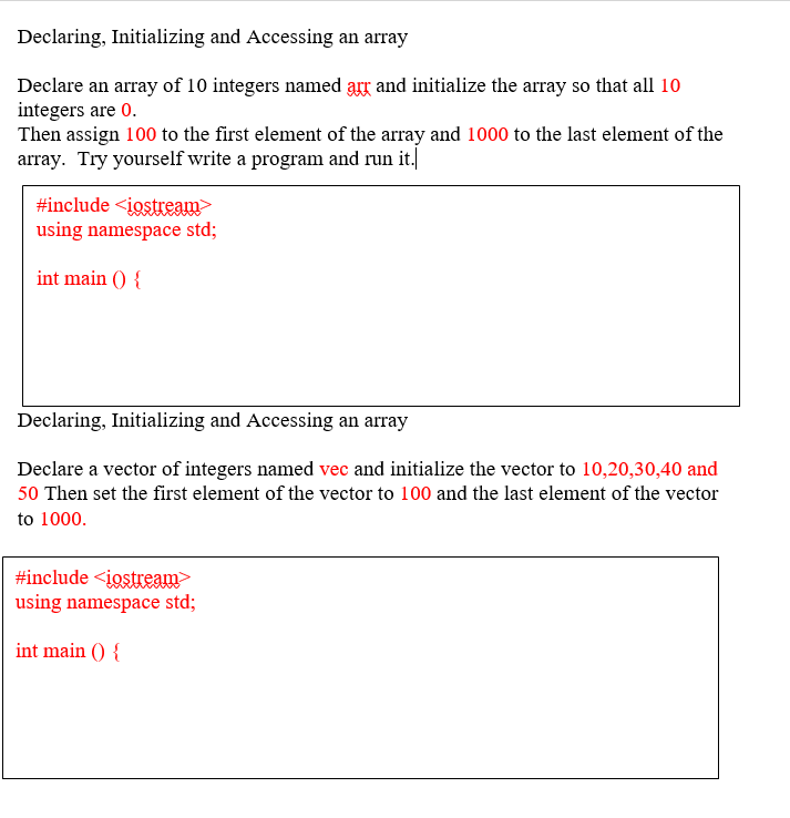 Solved Declaring, Initializing and Accessing an array | Chegg.com