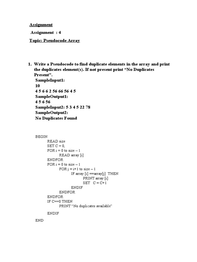 arrays.docx - Arrays - Pseudocode Assignment 1. Write a pseudocode to ...
