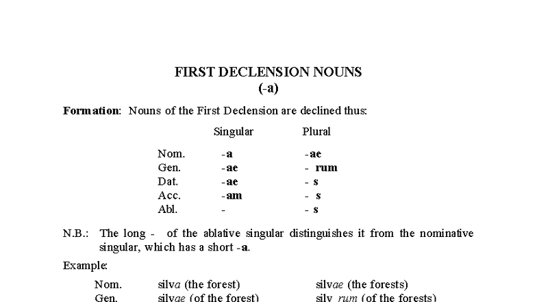 Declension 1a: First Declension Nouns Overview and Examples - Studocu