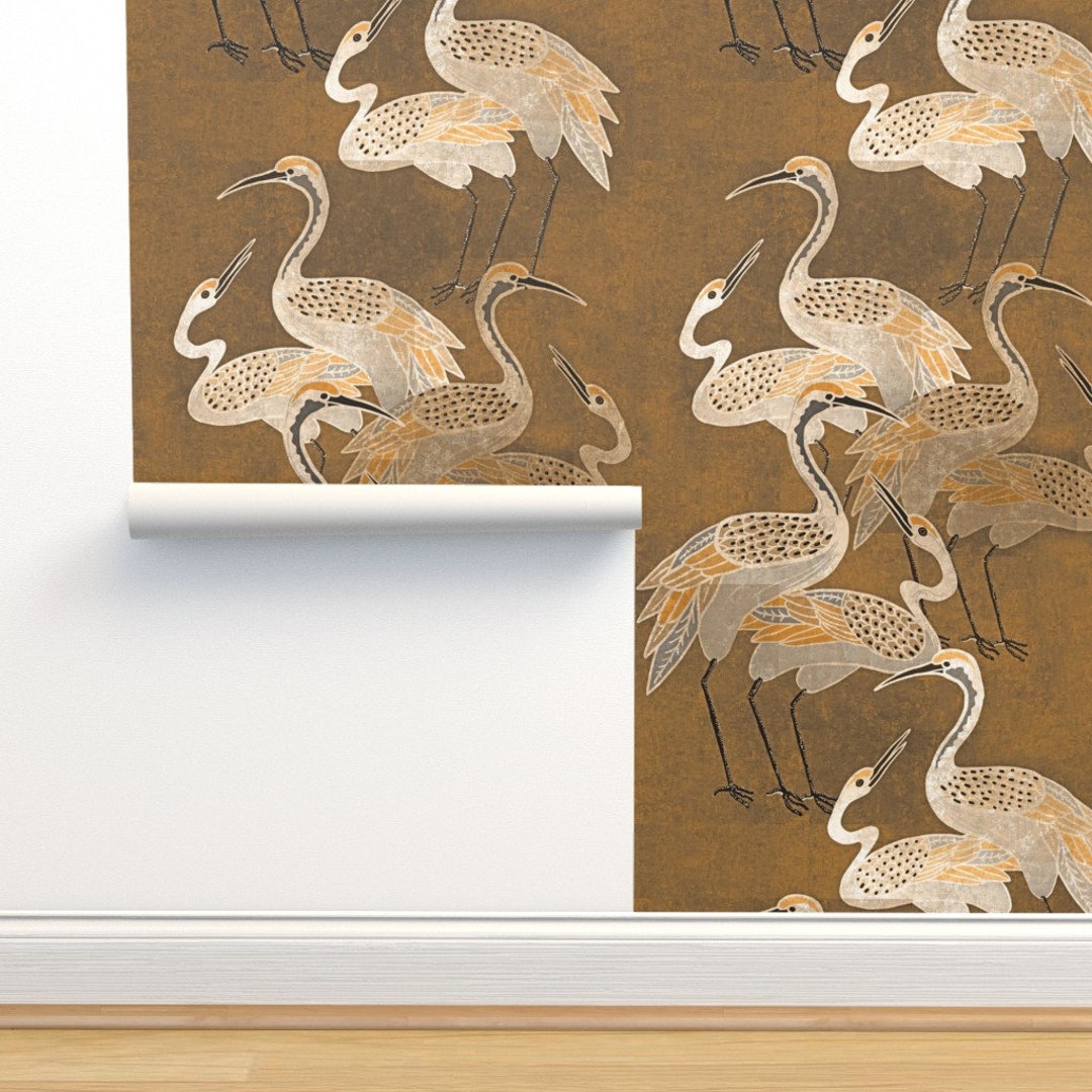 Art Deco Cranes Non-pasted Wallpaper Sepia Bronze - Deco Cranes Bronze ...