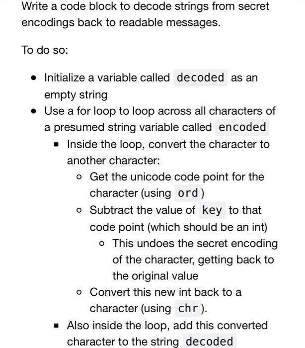 Solved Write a code block to decode strings from secret | Chegg.com