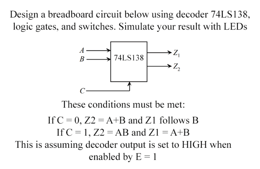 Solved Design a breadboard circuit below using decoder | Chegg.com
