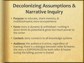 This graphic presents the key themes that describe decolonizing as ...