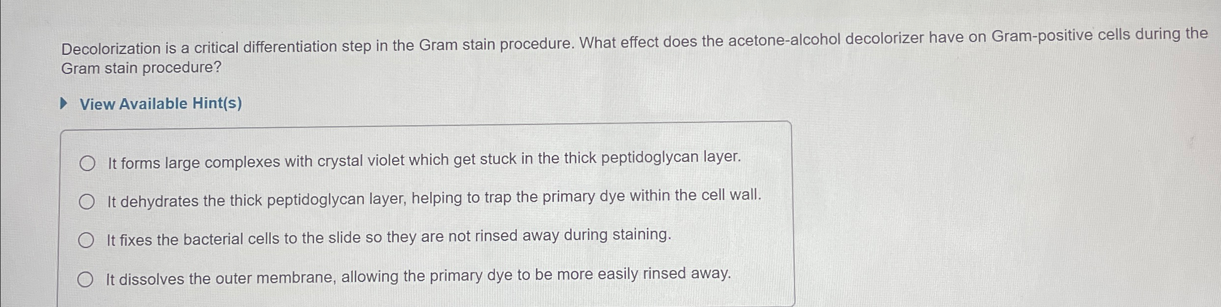 Solved What is the mechanism of action of the decolorizer? | Chegg.com