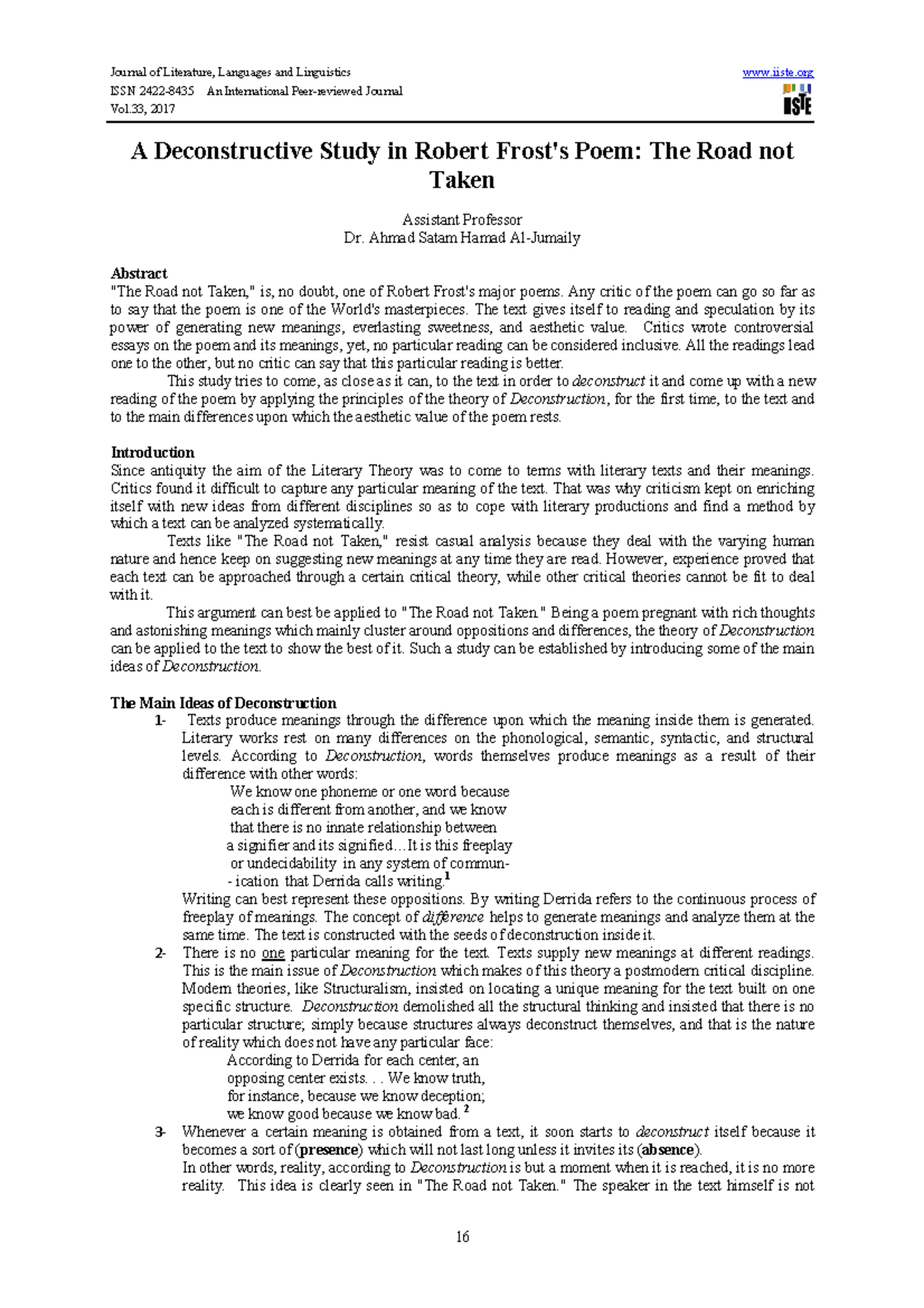 The road not taken..Deconstructive Analysis - ISSN 2422-8435 An ...