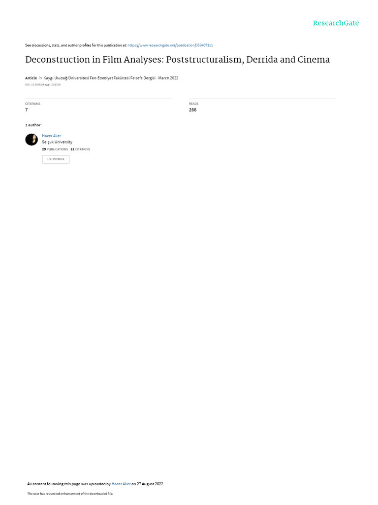Deconstruction in Film Analyses: Poststructuralism, Derrida and Cinema ...