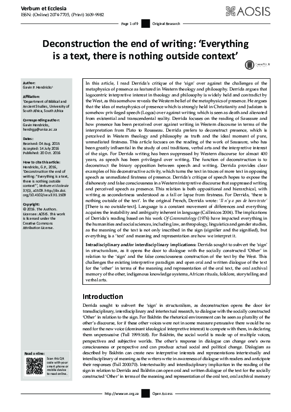 (PDF) Deconstruction the end of writing: 'Everything is a text, there ...