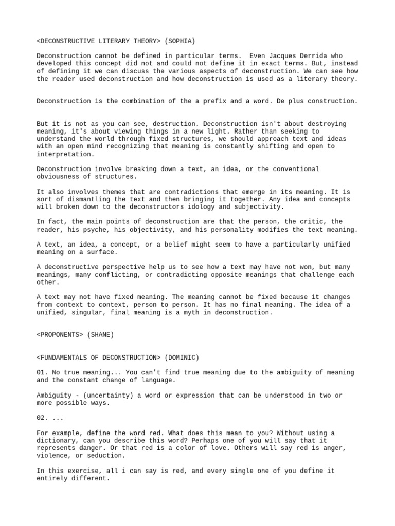 Deconstructive Literary Theory Script | PDF | Deconstruction ...