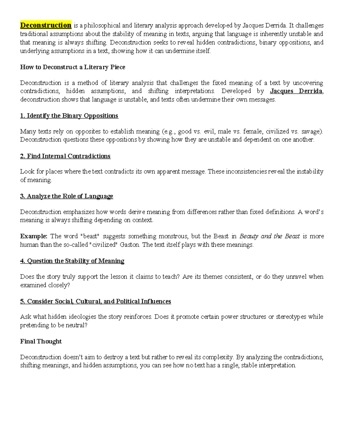 Deconstruction Essay | PDF