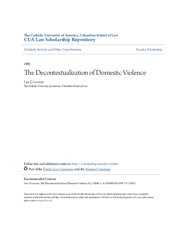 (PDF) The Decontextualization of Domestic Violence