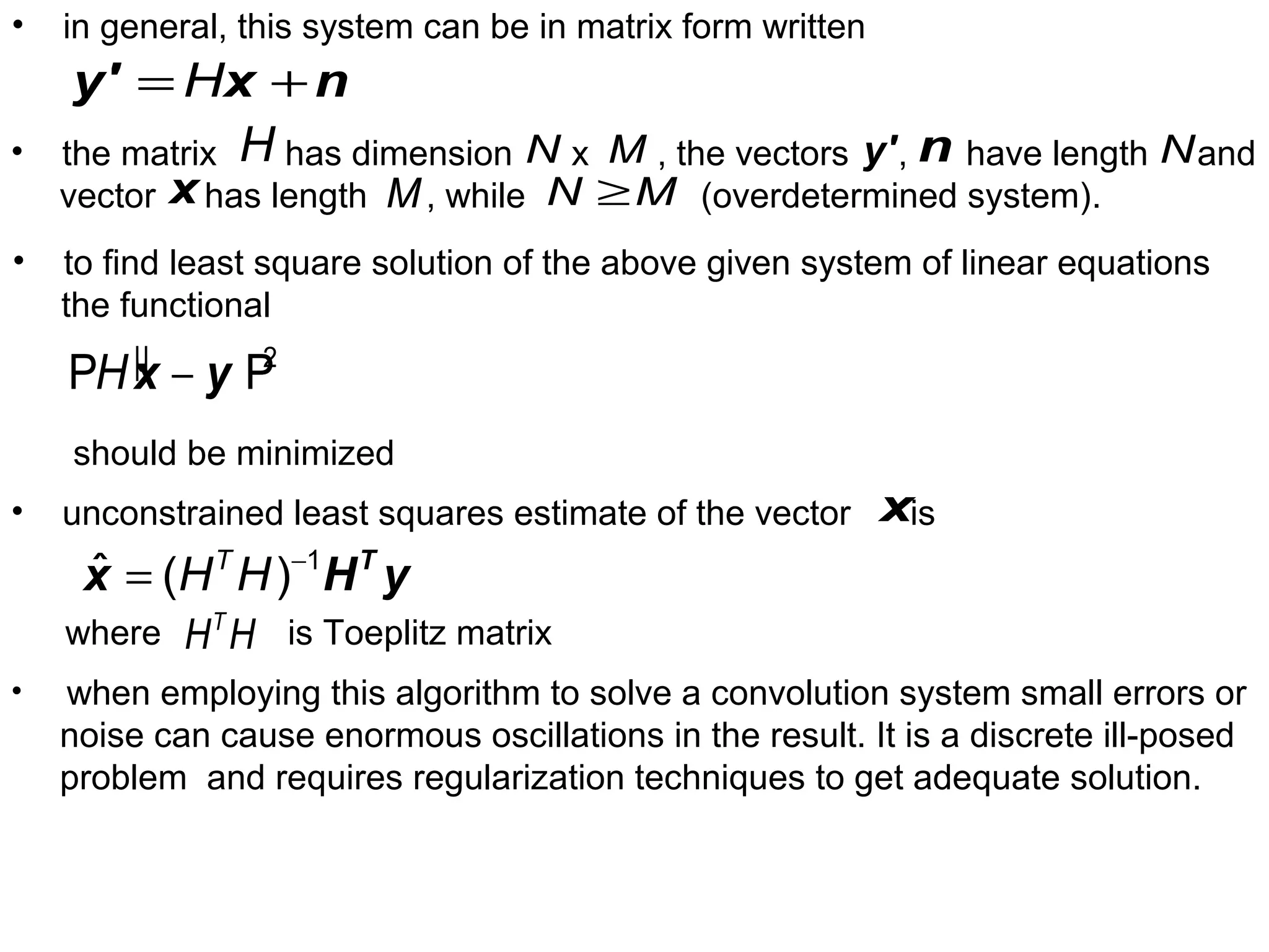 Matrix equation for the design of the deconvolution filter. | Download ...