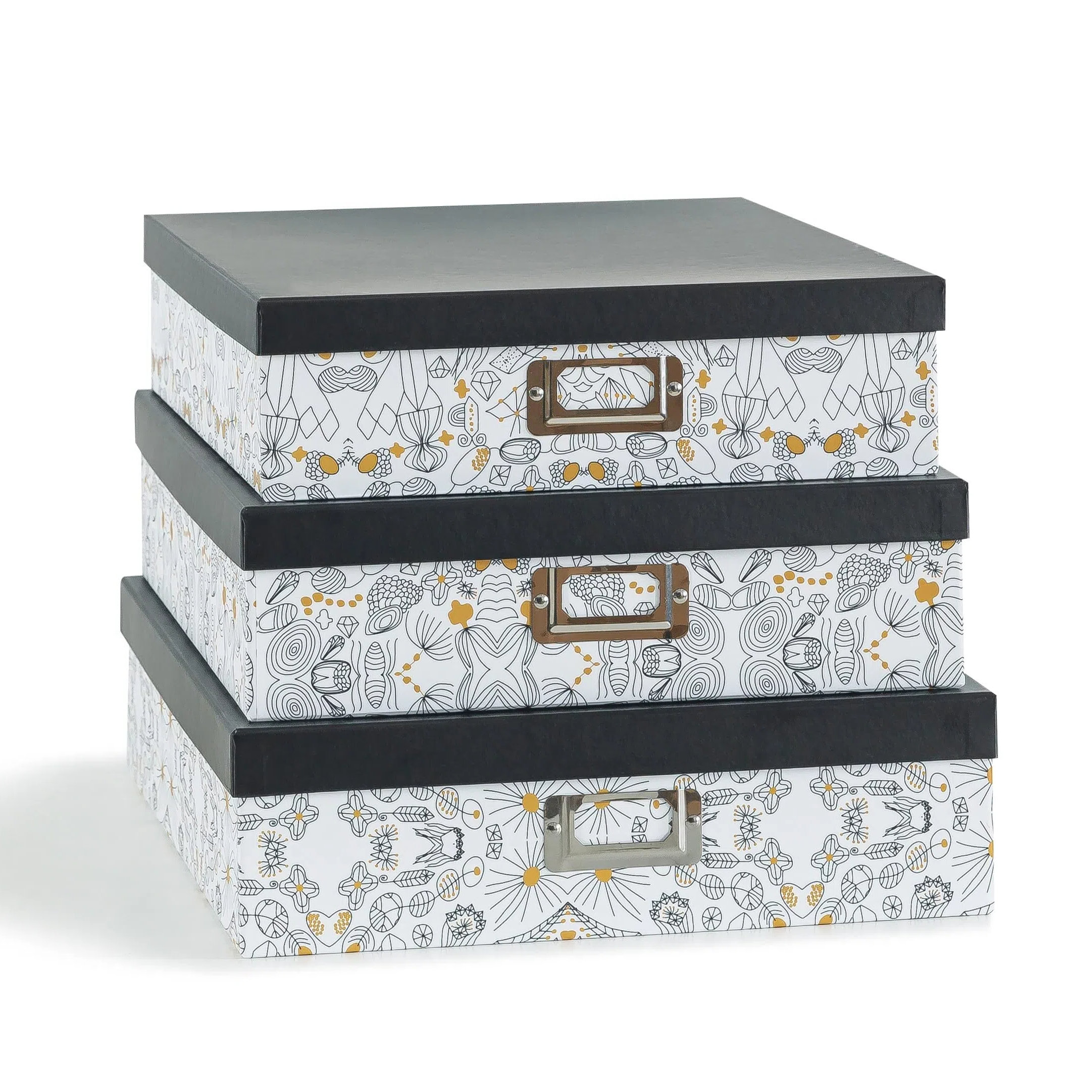 Latitude Run® Set Of 3 Square Stacking Boxes With Lids And Gold Label ...