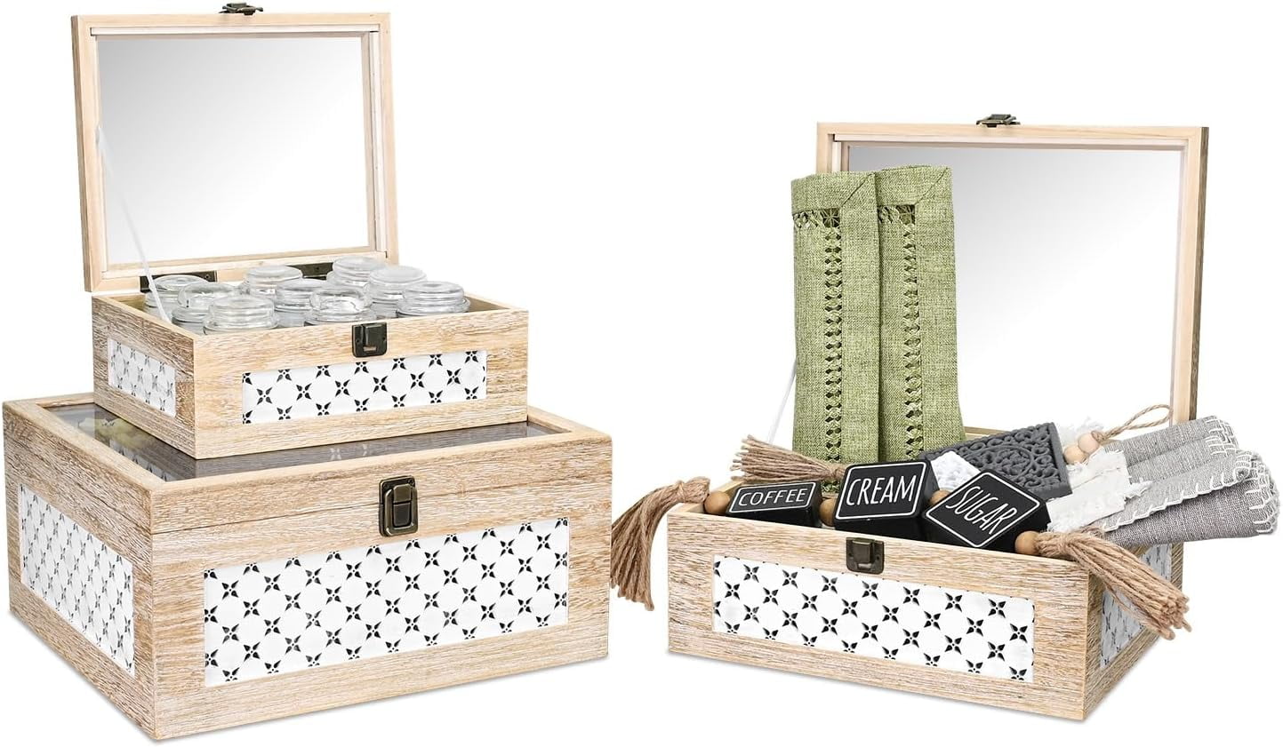 Set of 3 Stackable Wooden Decorative Boxes with Tempered Glass Hinged ...