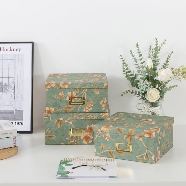Green Sage, Square Cardboard Decorative Stacking Storage Boxes with ...