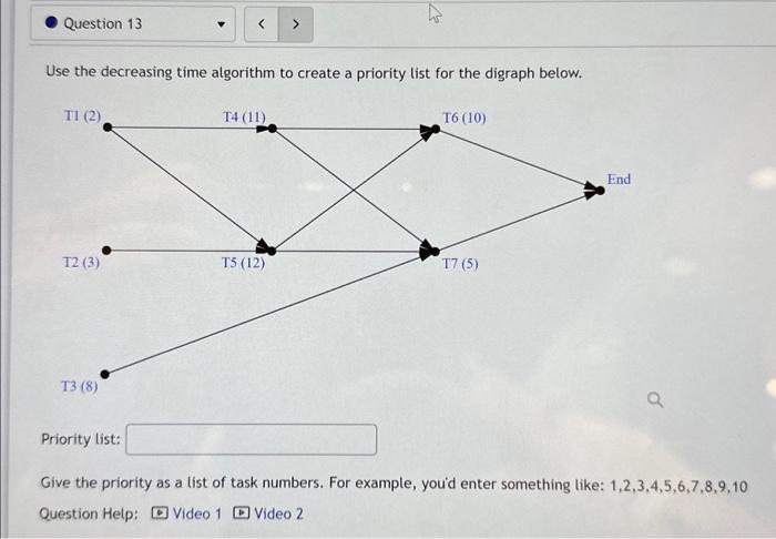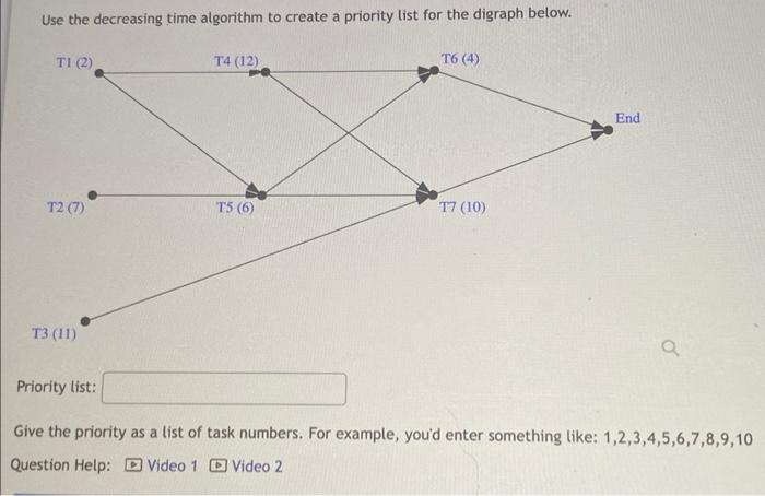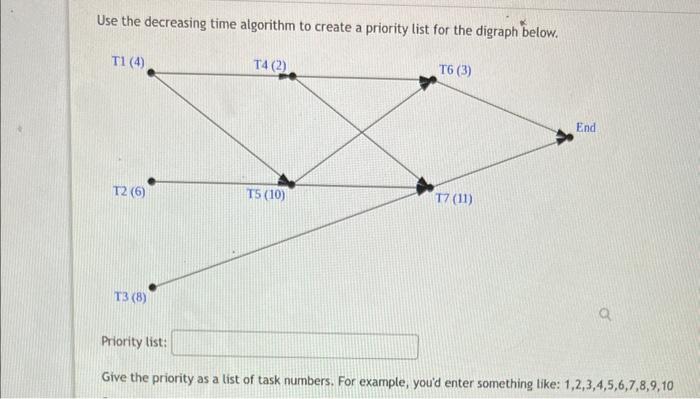 Solved: Use the decreasing time algorithm to create a priority list for ...