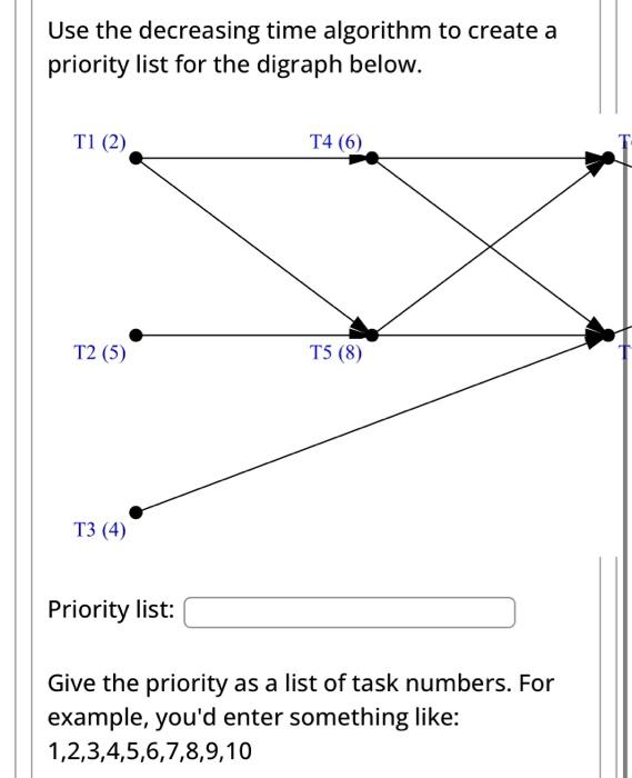 SOLVED: Use the decreasing time algorithm to create a priority list for ...