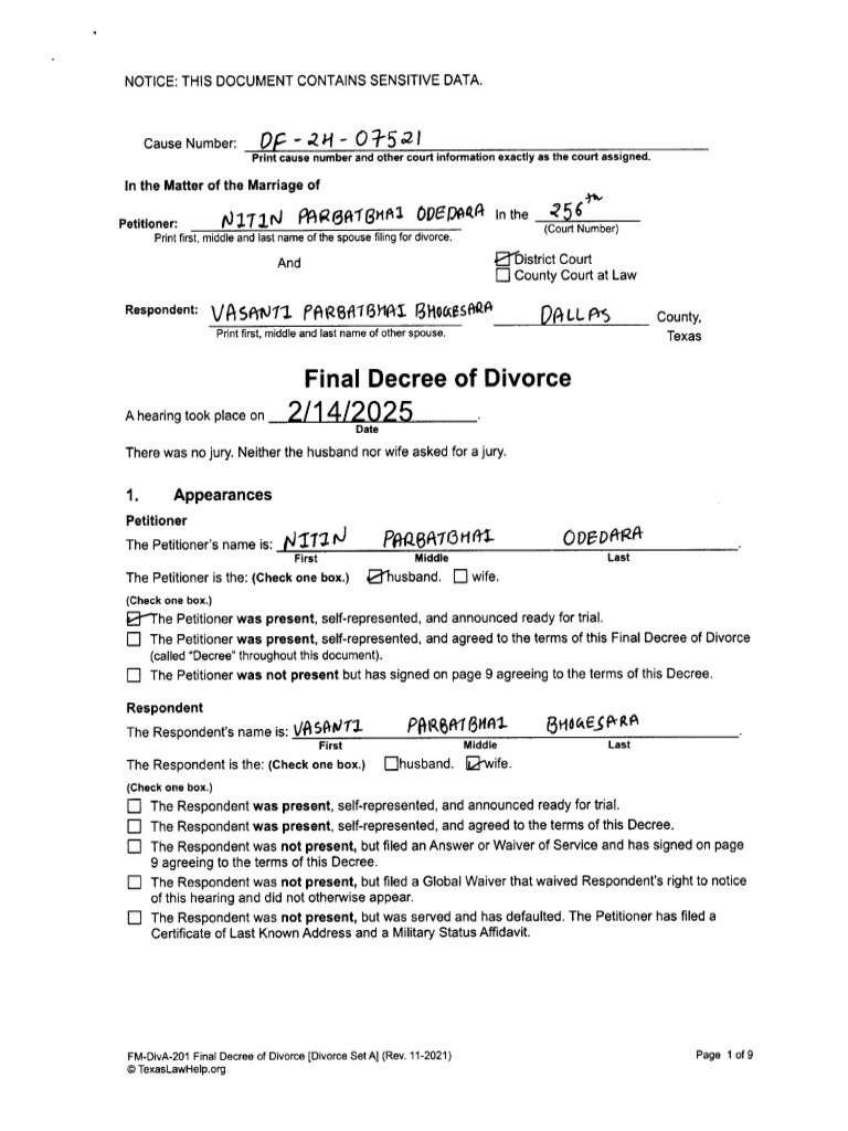 Divorce Decree - USA - Texas I - Tranlanguage Certified Translations