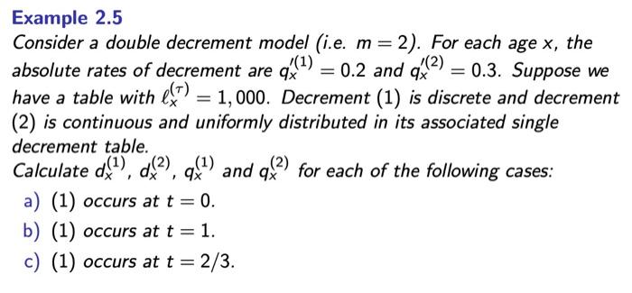 Solved Example 2.5 Consider a double decrement model (i.e. | Chegg.com