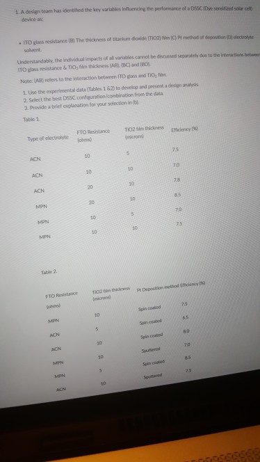 1. A design team has identihed the kry variables | Chegg.com